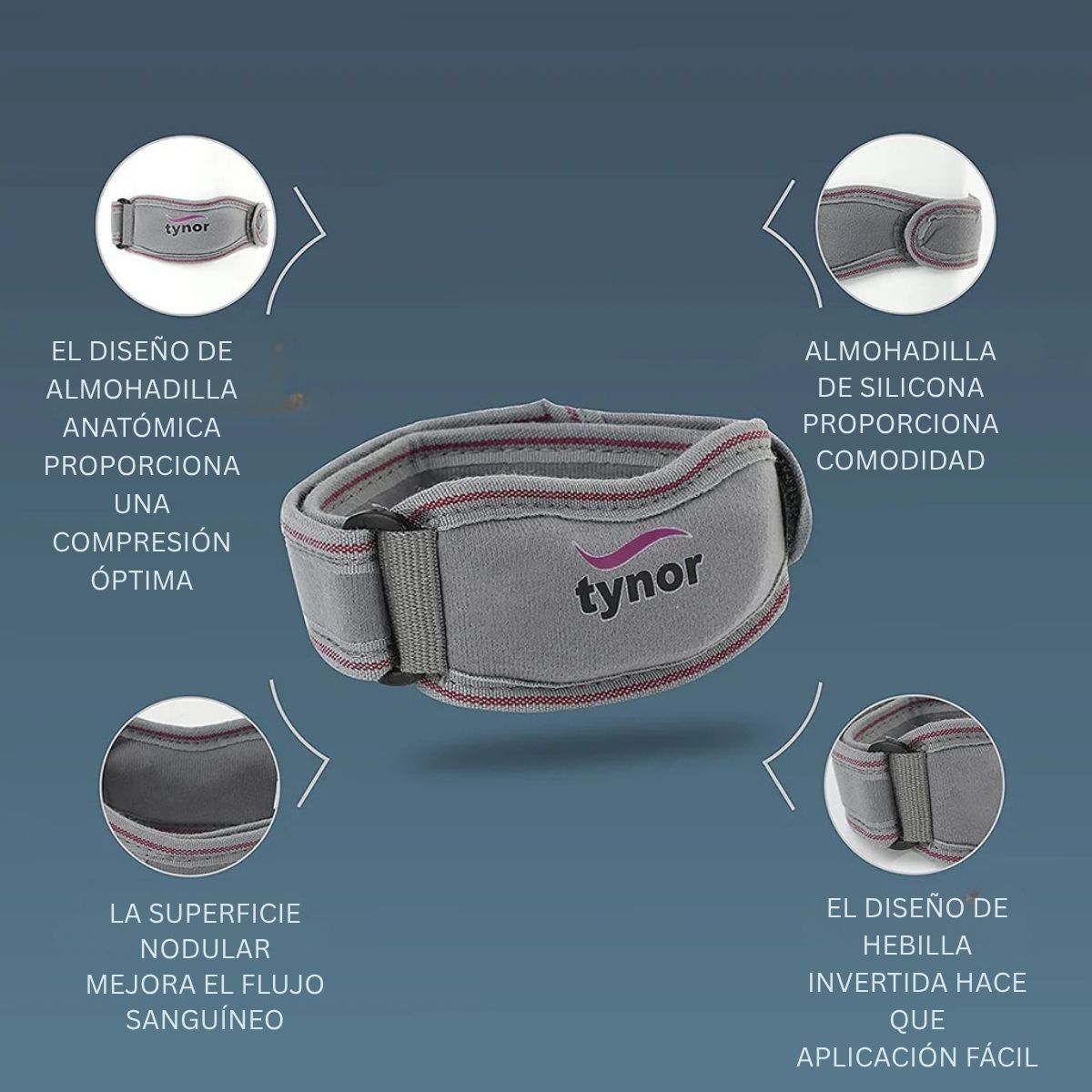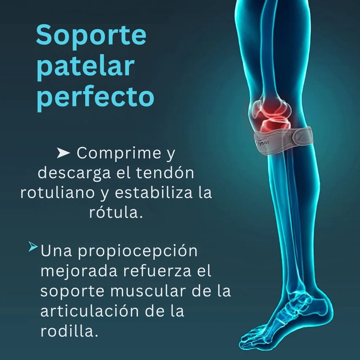 Anillo subrotuliano con almohadilla de silicón, provee una cómoda compresión al tendón rotular, dando un efectivo soporte a la rótula; gracias a su diseño, cuenta con un sistema propioceptivo, es decir, incluye a cualquier receptor sensorial o terminación nerviosa que aporta sensibilidad interna o propioceptiva al cuerpo. Los propioceptores están localizados en los músculos, articulaciones, tendones y en el aparato vestibular.